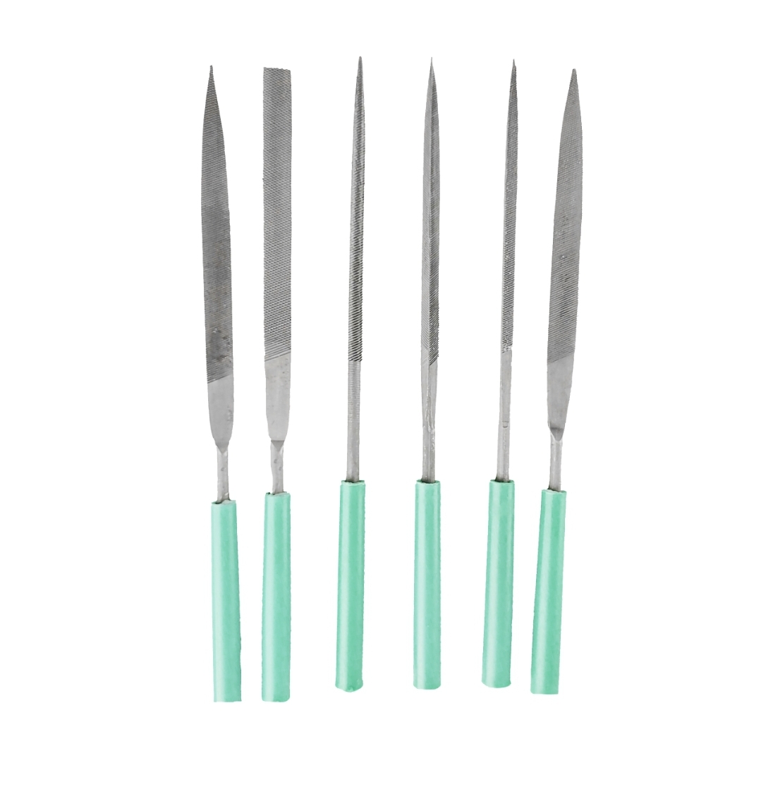 Набор миниатюрных напильников от "MAXIMUM" состоит 6 инструментов: плоского, плоского с заостренным наконечником, полукруглого, круглого, треугольного и квадратного. Набор мини надфилей с острыми наконечниками используется для обработки различных поверхностей, острых кромок, заусенцев или выступов. Рабочая часть выполнена из стали с бархатной насечкой. Рукоятки изготовлены из пластика. Набор поставляется в специальном резиновом чехле.